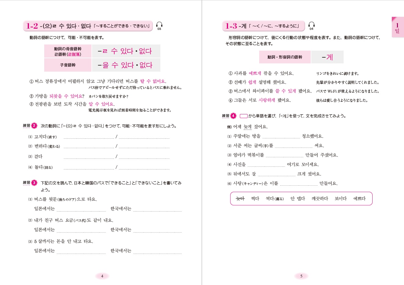 る点も特徴です。各課には「読む」「書く」「会話練習」を用意し、奇数課では「聞い
