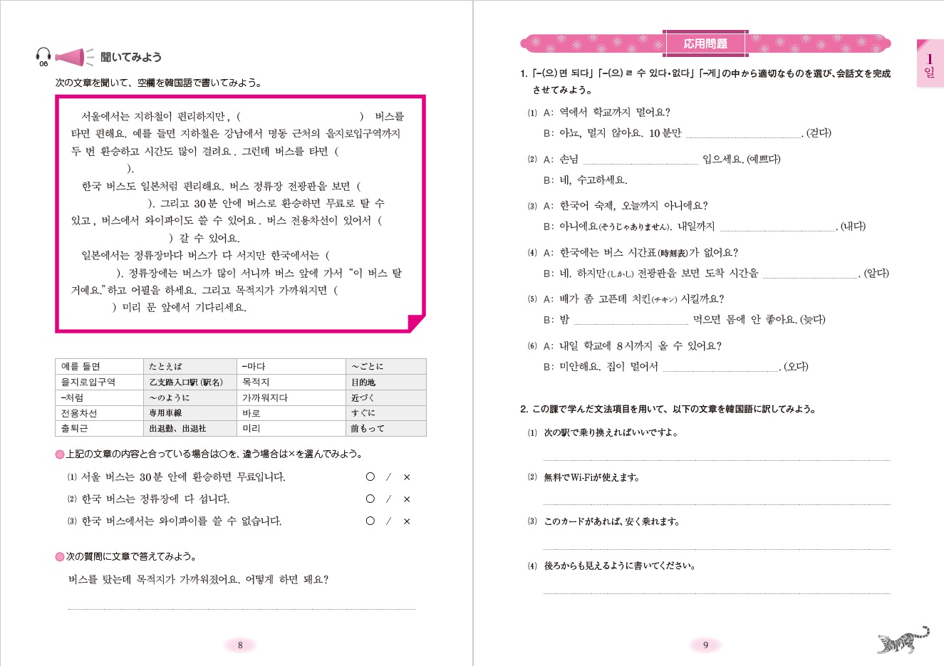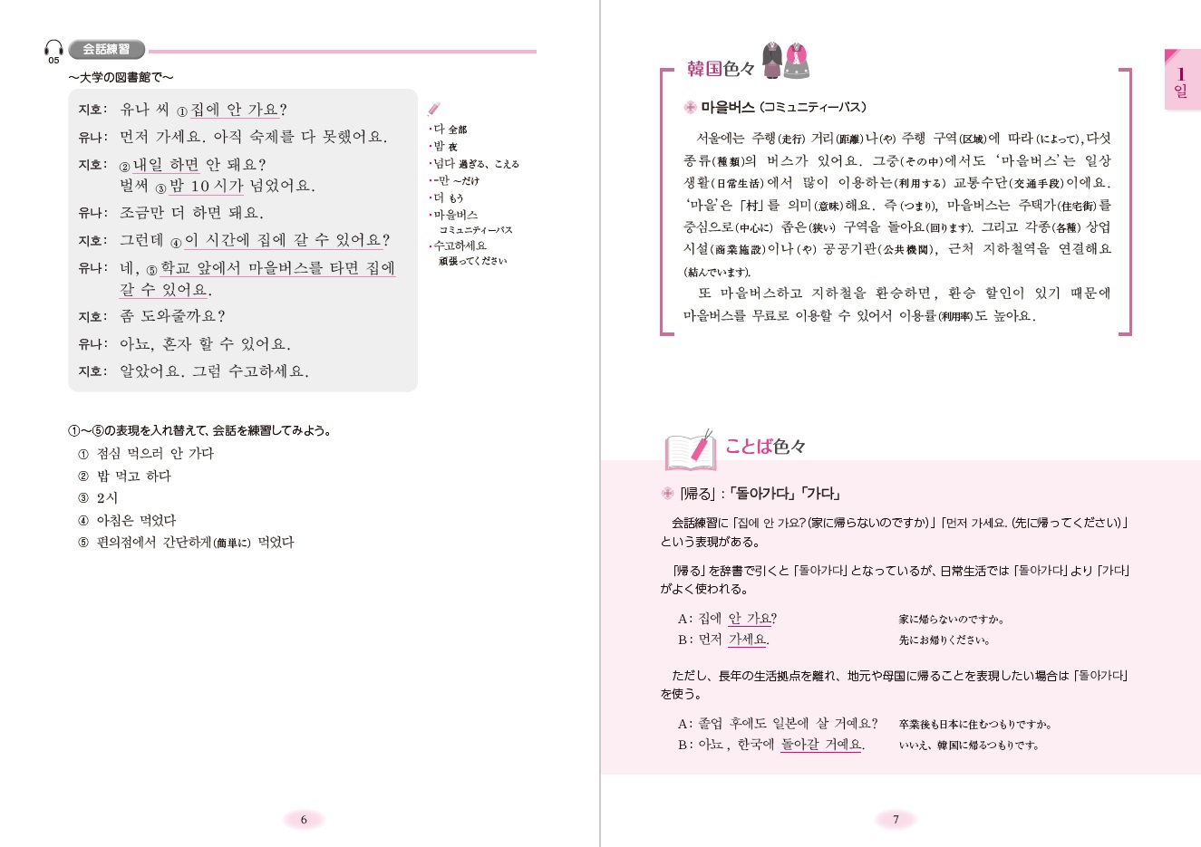 ◆各課では、主人公ユナが留学生活を通じて感じた「韓国の社会と大学生活」をテー